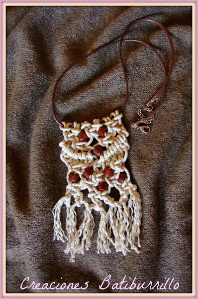 10- Incluimos 2 abalorios (esta ves los enhebré en los cordeles laterales para que cayesen hacia el centro) (arriba salían del central y caían hacia los lados).