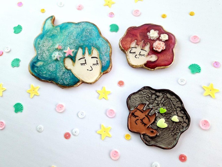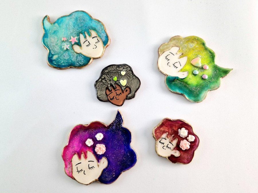Hace dos semanas participé en la Jornada Arcillera organizada por el grupo de Facebook Arcilleras del Perú, con un taller en directo en el que enseñé a hacer mis Dreamy Girls. ¿Qué son las Dreamy Girls? Pues lo que tú quieras: se puede usar como colgante, como broche, como decoración para la pared, para la portada de un cuaderno… cualquier cosa que se te ocurra. Lo importante es que aprendas la técnica para imitar esmalte, y desde ahí puedes hacerlo con la forma que elijas. De hecho, hace un tiempo compartí en el blog otro tutorial muy parecido para aprender a hacer unos colgantes con la técnica del falso esmalte.Pues bien, en esta ocasión se me ocurrió hacer la forma de la cara de una chica con un pelo muy voluminoso y espectacular, en el que poner todo el color, brillo y adornos que queramos, y como tiene esa cara tan soñadora, la llamé Dreamy Girl.