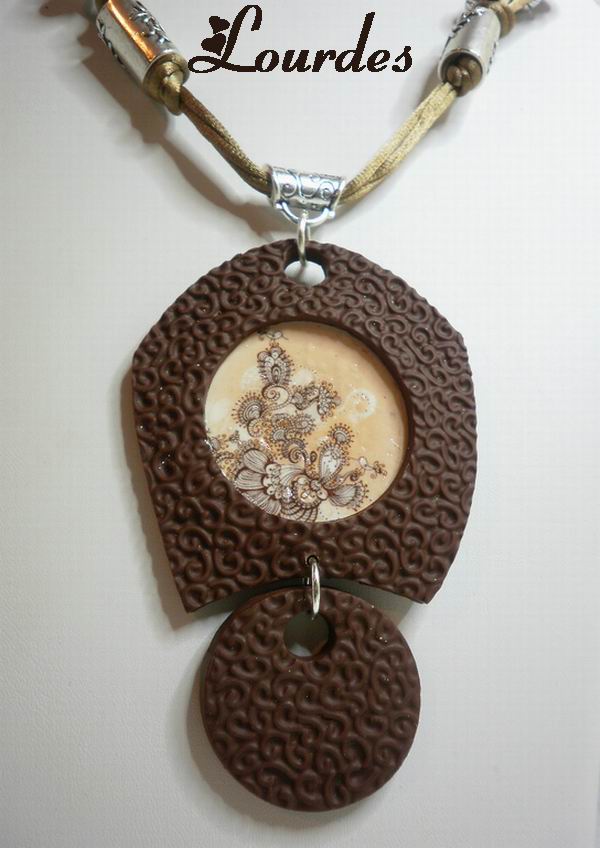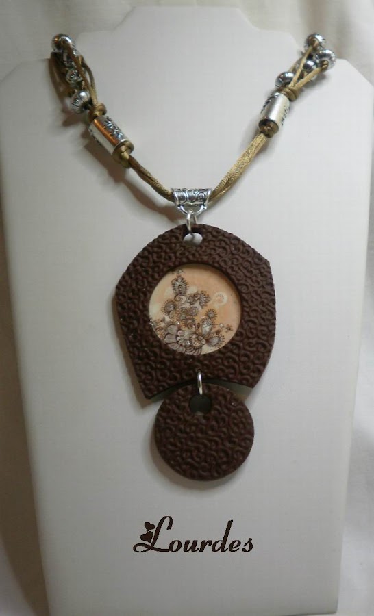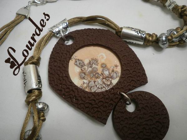Collar de arcilla polimérica con diferentes texturas y acabados y alambre grueso. Para Inés con todo mi cariño