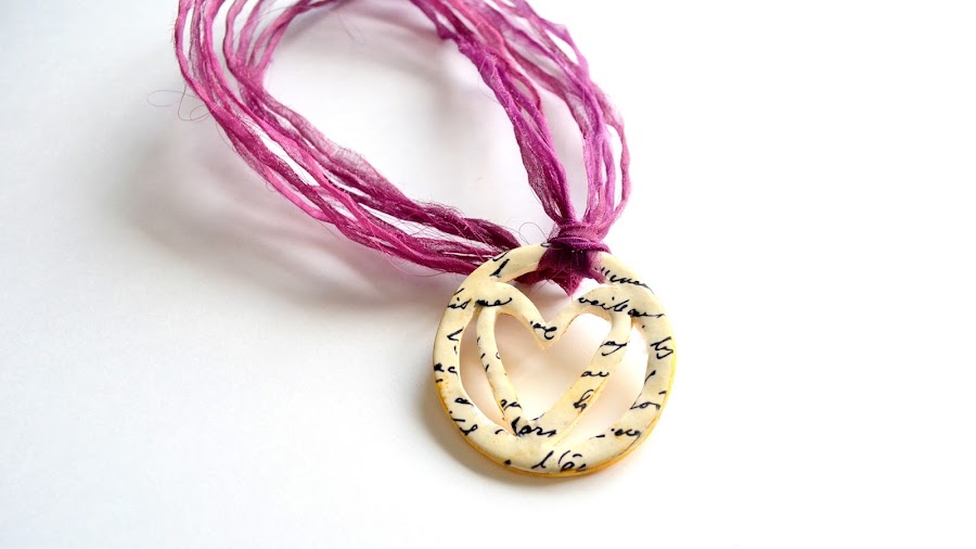 Hoy traigo un colgante circular con un corazón que, aunque no tiene ninguna ciencia, me ha parecido bastante original. También porque he salido de mi zona de comfort con los montajes, utilizando unas cintas de gasa deshilachadas que le dan un aspecto informal al conjunto: