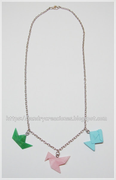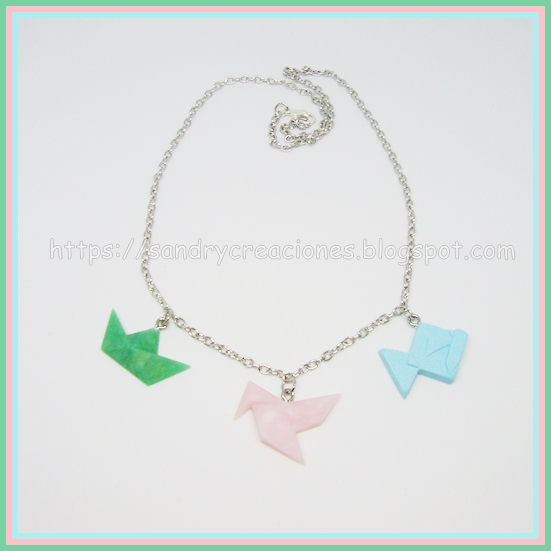 Ya estamos de nuevo por aquí para mostraros un nuevo trabajo con pastas o arcilla polimérica, concretamente unos preciosos colgantes que simulan figuras de origami: un pez, un barco y una pajarita que podemos poner en un solo collar o bien utilizar como colgantes individuales, a gusto de cada uno.
