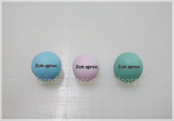 Hacemos tres bolitas de cada color de aproximadamente 2cm de diámetro:
