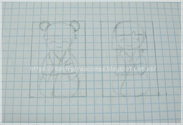 Para empezar esbozamos en un papel la idea de muñeca que teníamos en mente, en este caso kokeshis.