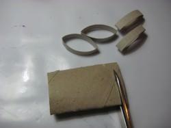 Comenzamos por aplastar los tubos de cartón y cortarlos en tiras.