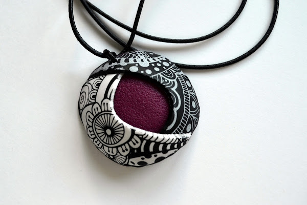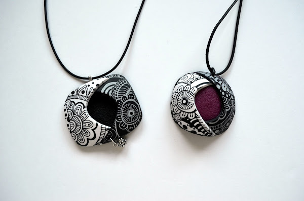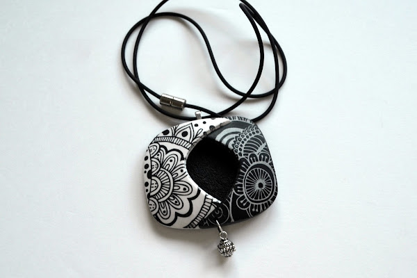 Por eso me hice estos colgantes usando esa técnica, esta vez combinando arcilla y pintura en blanco y negro: