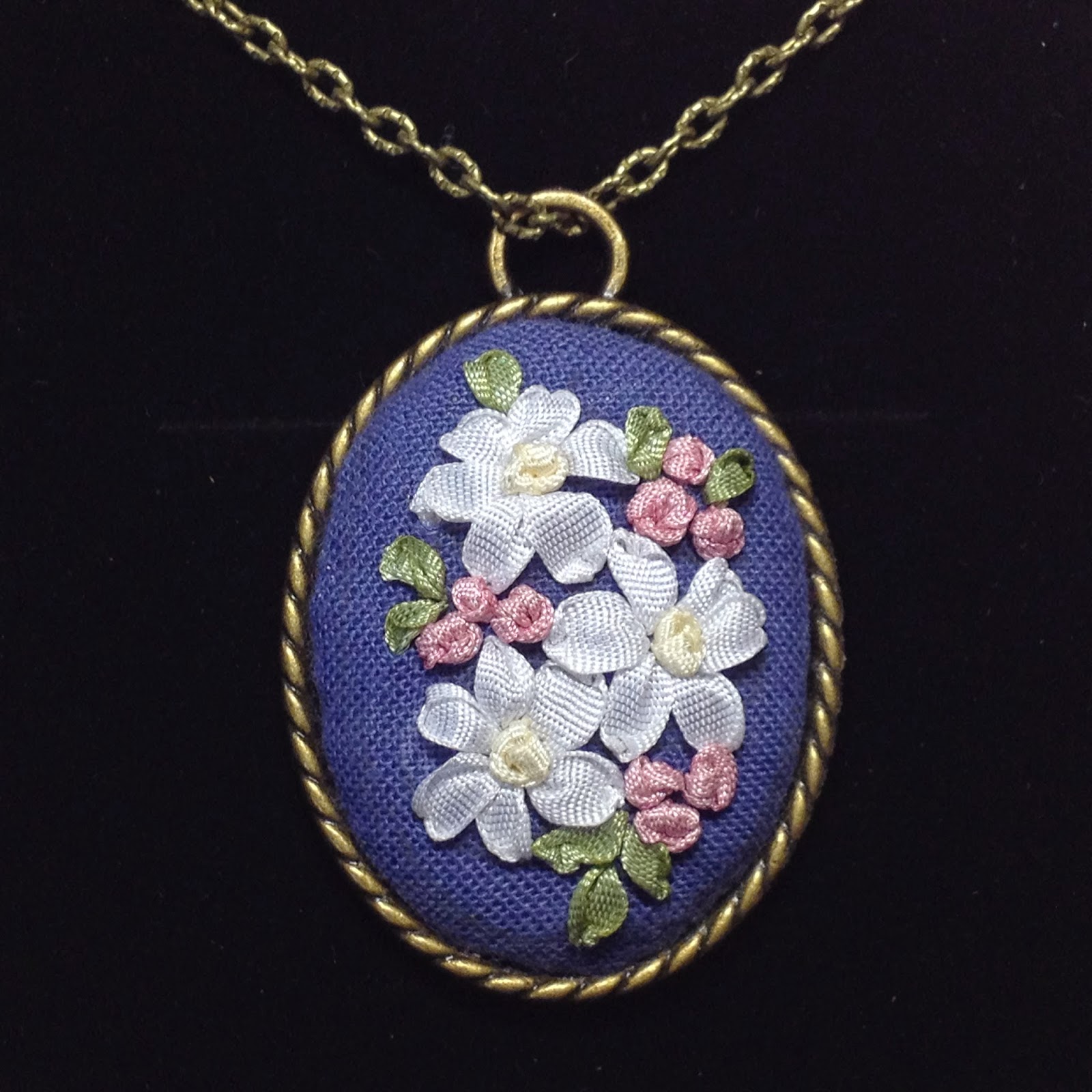 He estado haciendo más camafeos nuevos, unos cuantos ya los vendí y los he tenido que hacer de nuevo, la verdad es que es un detalle que sale de lo normal, bordados con cintas de sedas, que en España hay pocos, pero espero que algún día se puedo dedicar más tiempo en esta técnica.