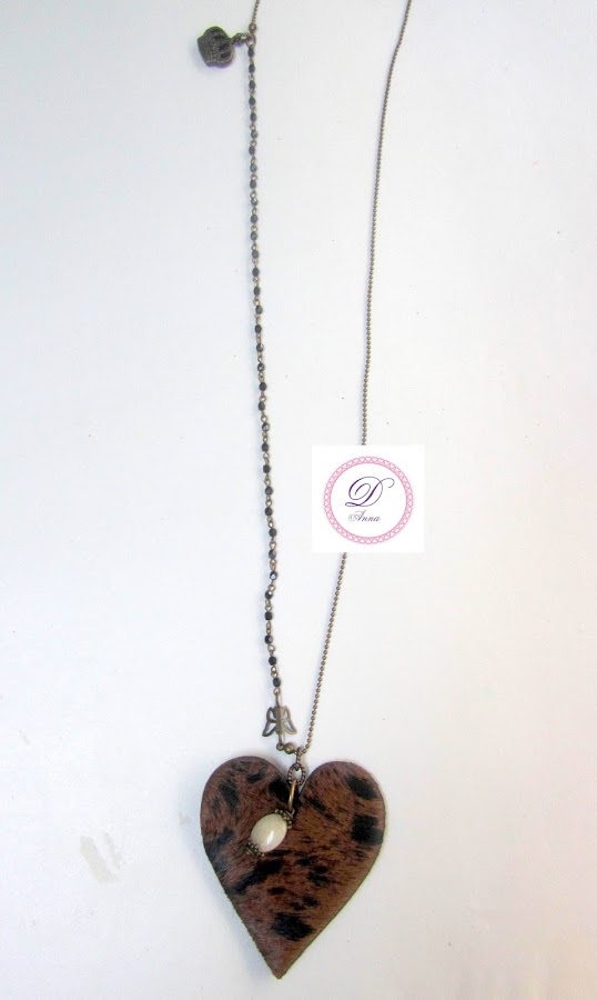 Collar largo con pieza de corazón de piel y piedras. 18€