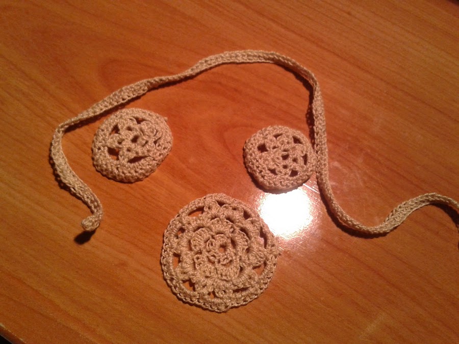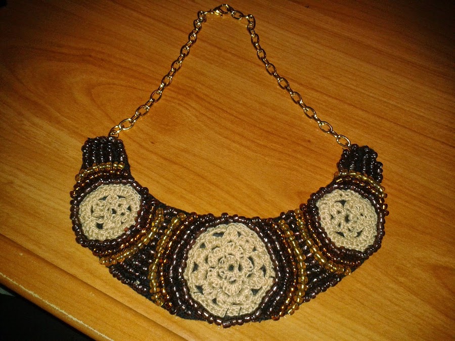 Me acordé que tenía unos círculos hechos a ganchillo y decidí utilizarlos como elemento decorativo para el collar.