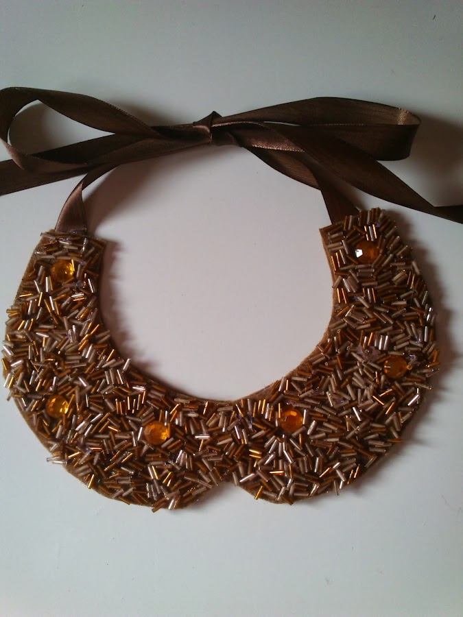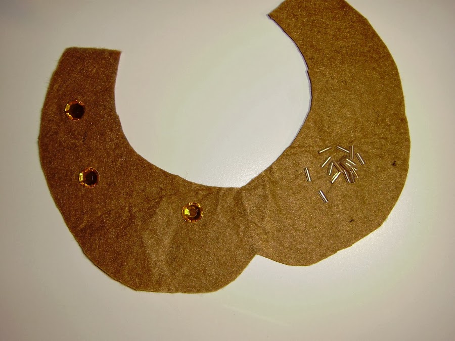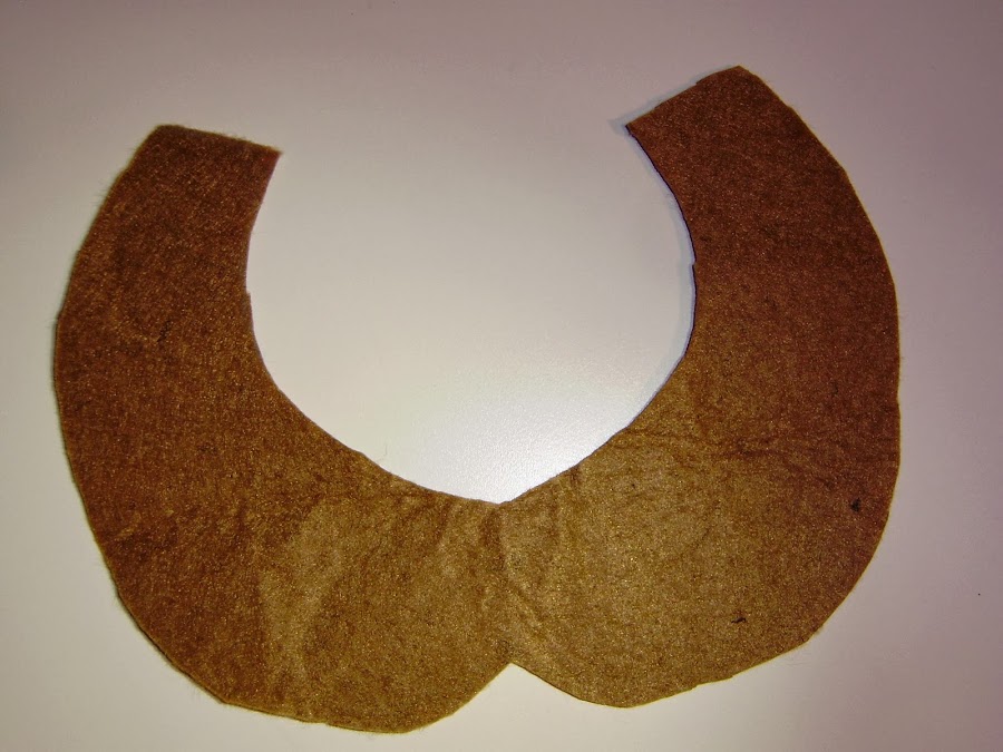 Marcamos la plantilla de papel o la sujetamos con alfileres en el fieltro y recortamos la forma que hemos elegido para nuestro collar.