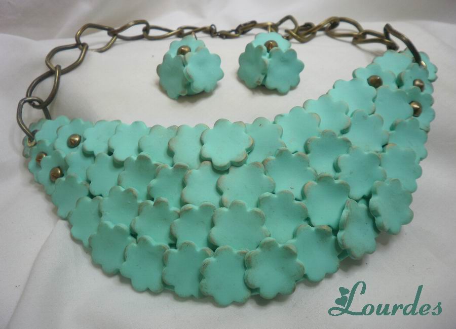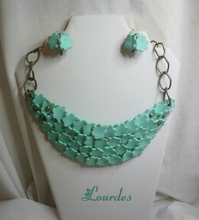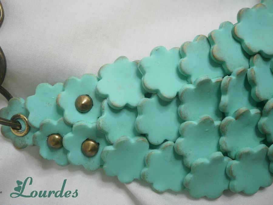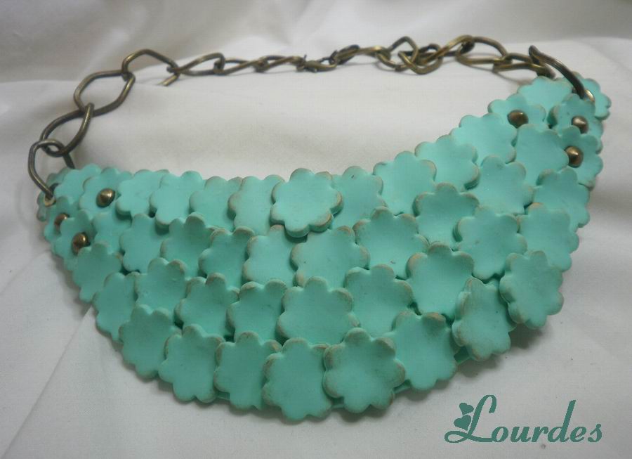 Hoy estreno este collar babero de arcilla polimérica, repleto de florecillas en oro viejo.
