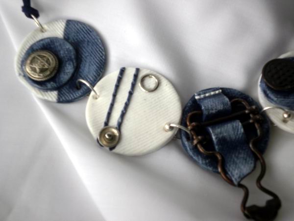 Collar de arcilla polimérica con diferentes texturas y acabados y alambre grueso. Para Inés con todo mi cariño