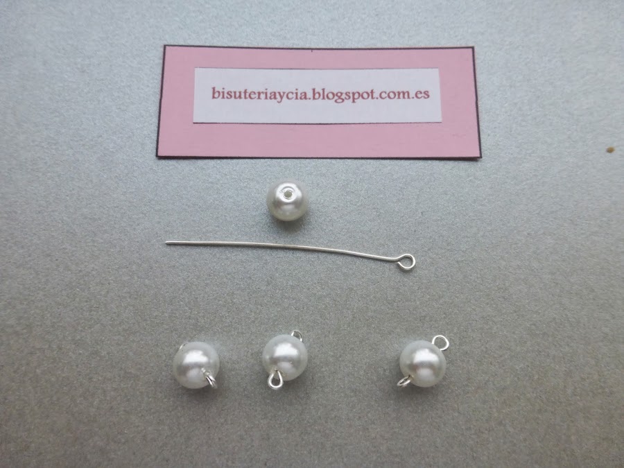 Para ellos enfilaremos una perla en un bastoncillo para pendientes con la cabeza de anilla y nosotros haremos la anilla del lado contrario.