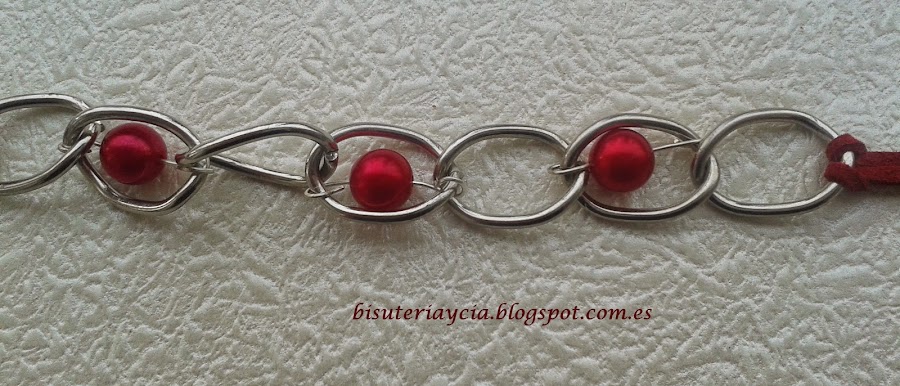 Lo primero que vamos a hacer es colocar de manera alterna una bola en medio de los eslabones de la cadena, por eso la cadena debe ser XL, para ello utilizaremos los bastones para pendientes.