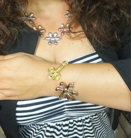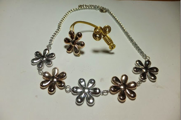 Hoy quiero enseñaros un collar que no tiene gran misterio, pero lo hice a juego con el brazalete del otro día. Ese que hice de alambre magico y una flor.