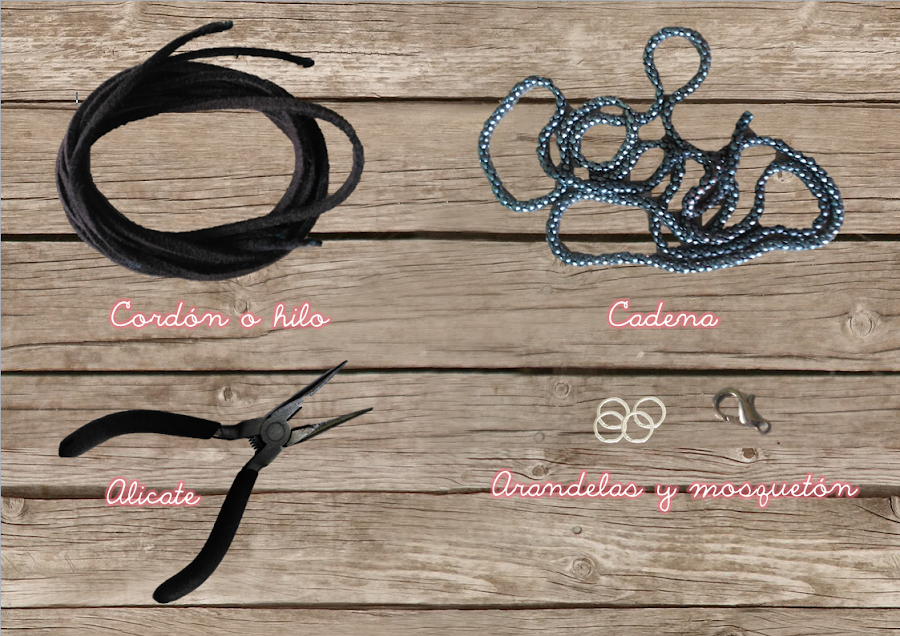 Por último, añadimos otra arandela con el abalorio y pasamos la cadena. Para cerrar la cadena, utilizaremos una arandela y un mosquetón.
