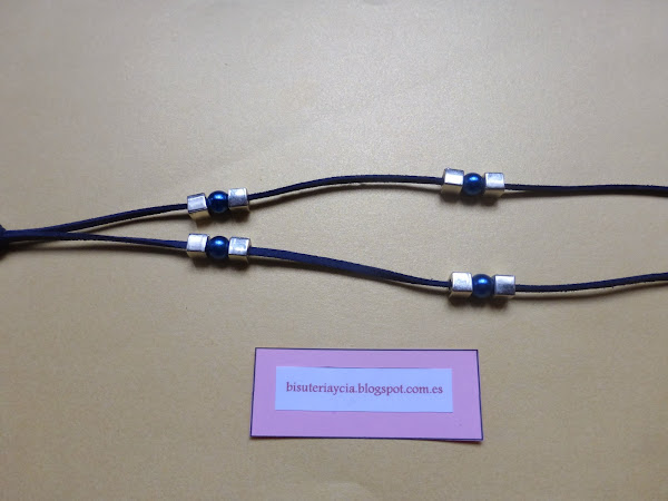 Una vez colocado el "Búho" en el centro a cada lado del collar enfilaremos dos series de piezas que consistirán en 1 pieza metálica, 1 bola y otra pieza metálica, lo podéis ver en la imagen siguiente.