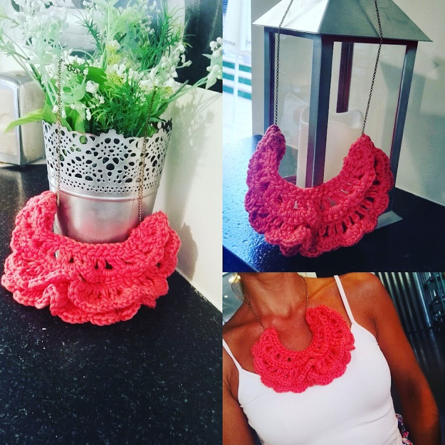 Os enseño un collar que me hice este verano y que me he puesto muchísimo y que aunque entre el otoño al ser un color coral , va a combinar perfectamente con la época .