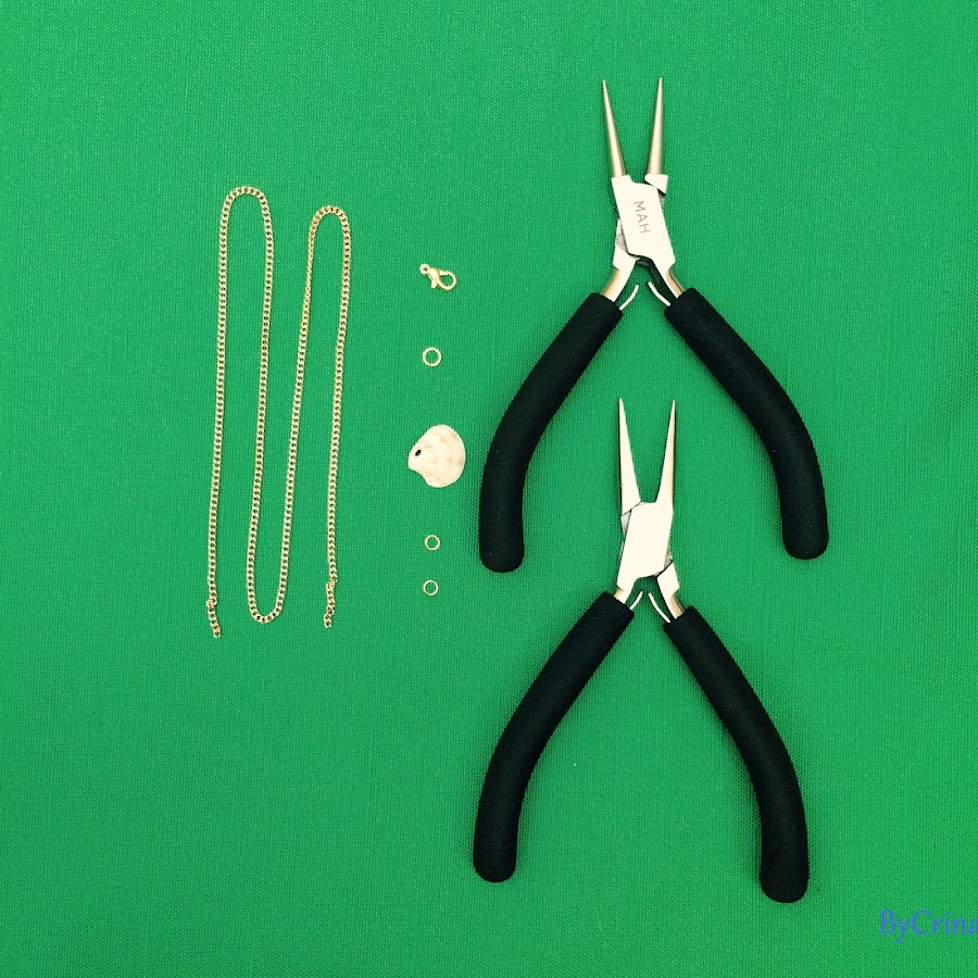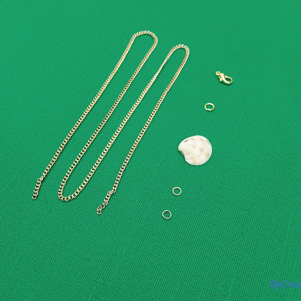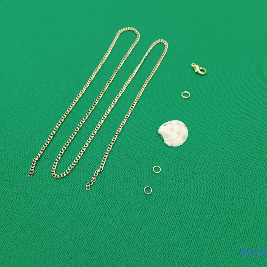 To start you"ll need a shell. Mine comes with little hole. A piece of chain that measures between 40 - 45cm, two small rings, a bigger one than the others and a locker.