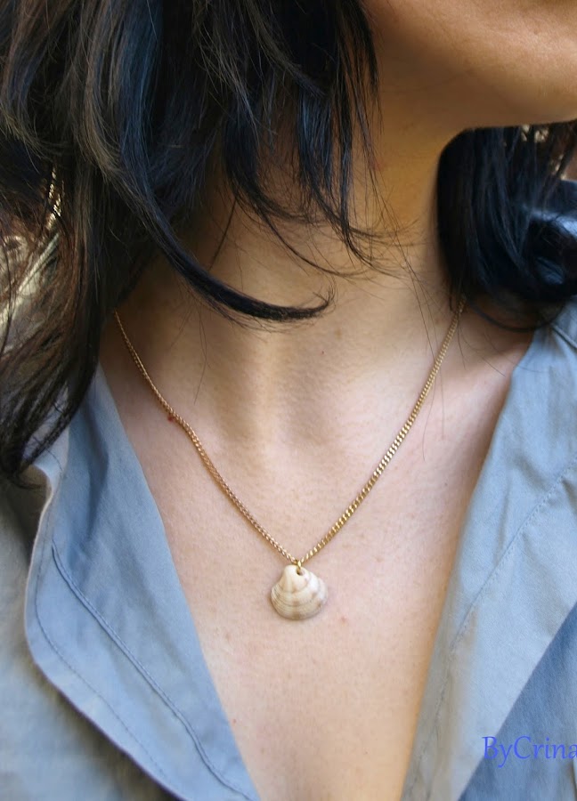 La verdad es que tuve la concha guardada durante un tiempo, hasta que un día leyendo un post que escribió Gemma de WaselWasel sobre cómo hacer colgantes con cristales de playa (sin agujeros) pensé ahora o nunca. La verdad es que fue como si me leyera el pensamiento, llevaba unos días pensando en hacerme el collar y fue leer el post y me puse manos a la obra.