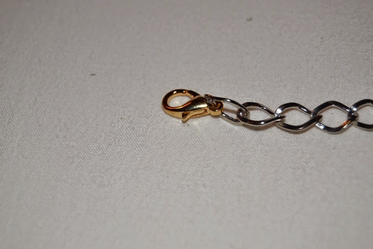 5- Enganchamos un cierre a un extremo de la cadena. El mío es dorado porque no tenía uno plateado, pero como no se ve...