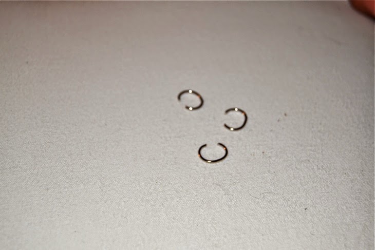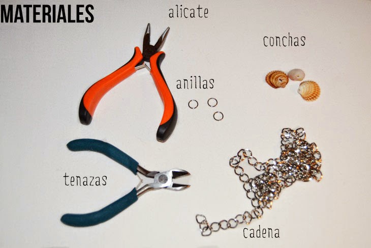 3- Enganchamos cada concha con una anilla previamente abierta con los alicates redondos