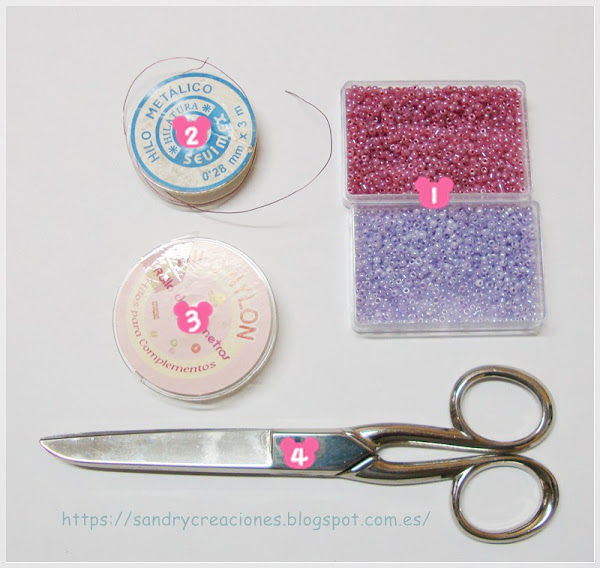Nota: Para realizar un motivo así con rocallas e hilo metálico es importante que tengáis en cuenta que el grosor del hilo metálico sea el adecuado para la medida del agujero de las rocallas y que este hilo pueda pasar varias veces por ellas.