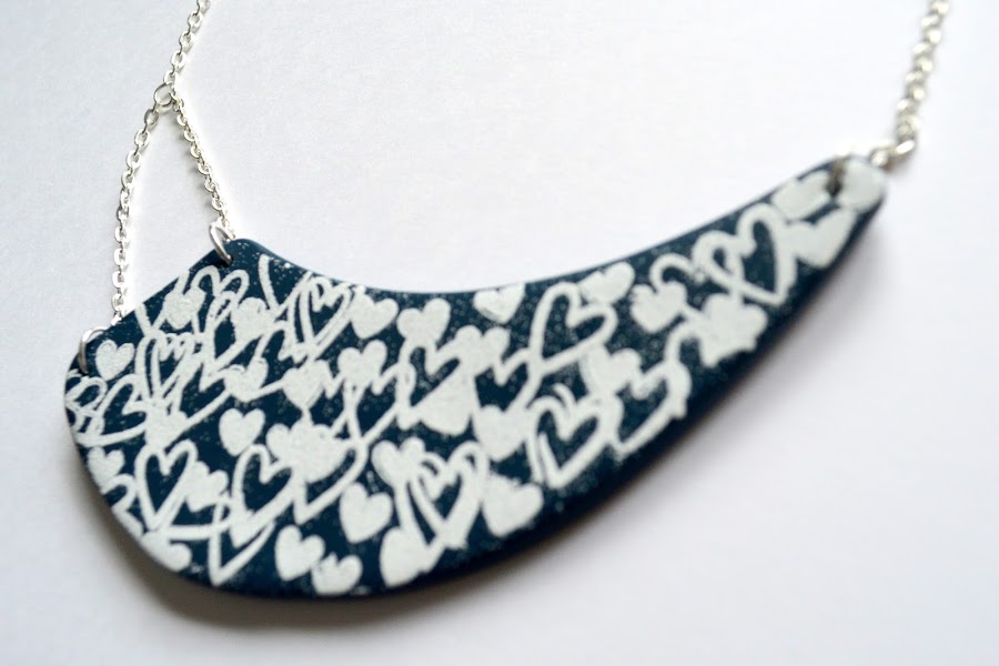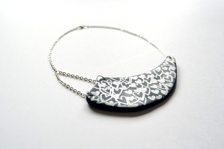En este tutorial, aprenderás a cortar el colgante de la forma deseada con la ayuda de una plantilla y una cuchilla flexible, a decorarlo con polvos de embossing y a montarlo con una cadena, anillas de diferentes tamaños y un cierre de mosquetón.