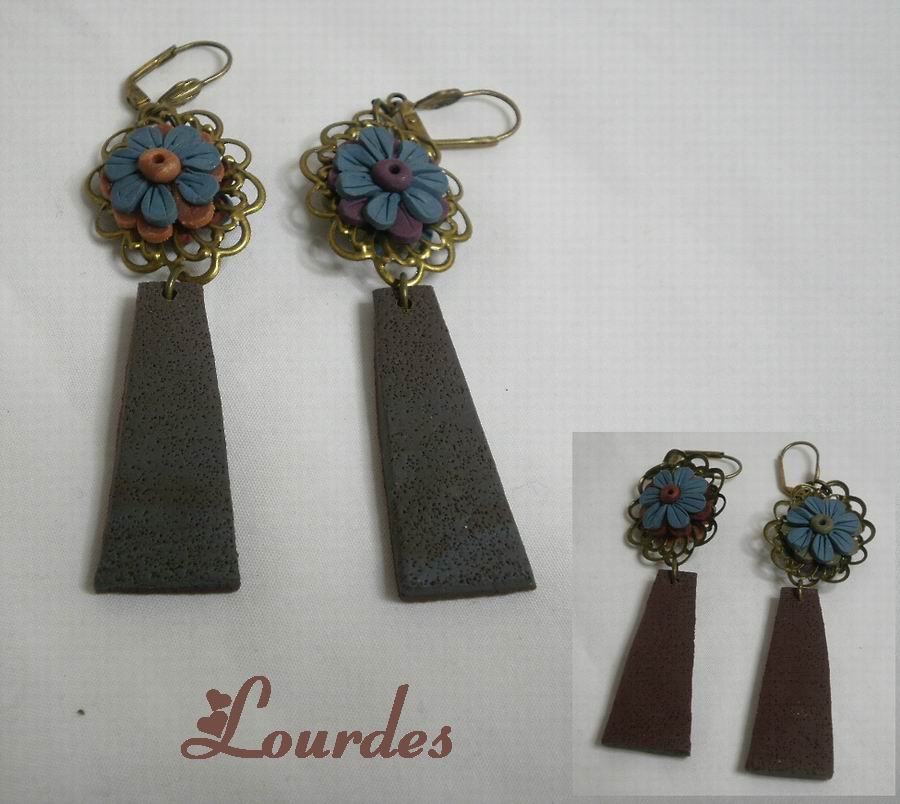 Los pendientes llevan un tono entre azul y marrón por delante y son marrones por la parte de atrás.