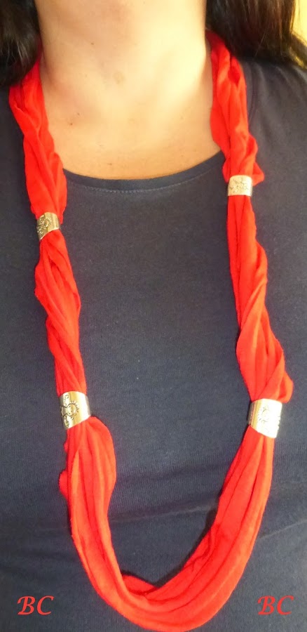 Empezaremos cortado tiras de trapillo, la medida de las tiras dependerá de lo largo que queráis el collar. ¿Cuantas tiras debemos cortar? Esto otro dependerá de las piezas que hayáis escogido.