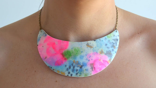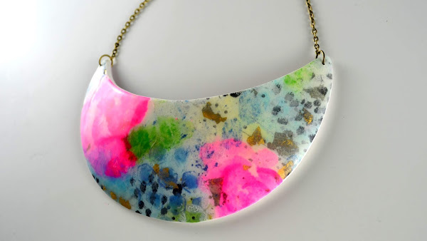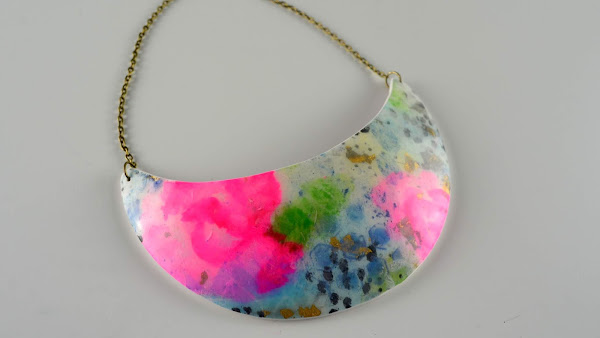 Y eso me ha pasado a mí: he aplicado técnicas mixed-media -que hasta ahora sólo había probado sobre el papel- a la arcilla polimérica, dando como resultado este collar babero: