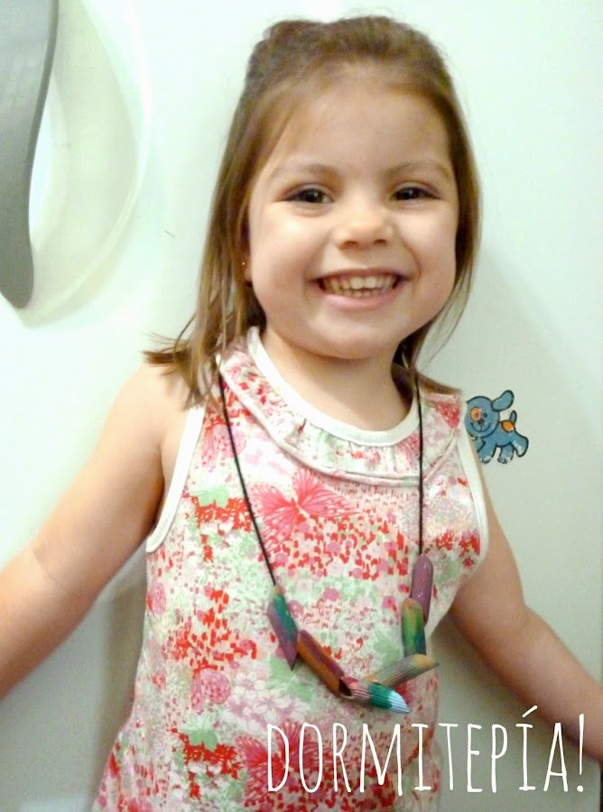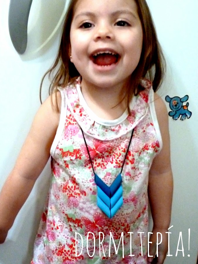 Para no hacer el típico collarcito aburrido de fideos (igual solita solita fue lo que le salió, tiene 3 años nada más!)