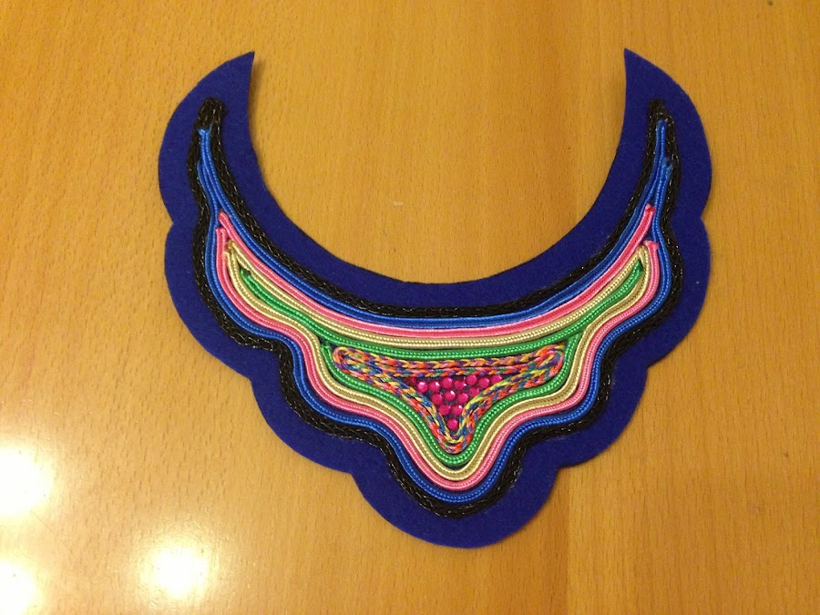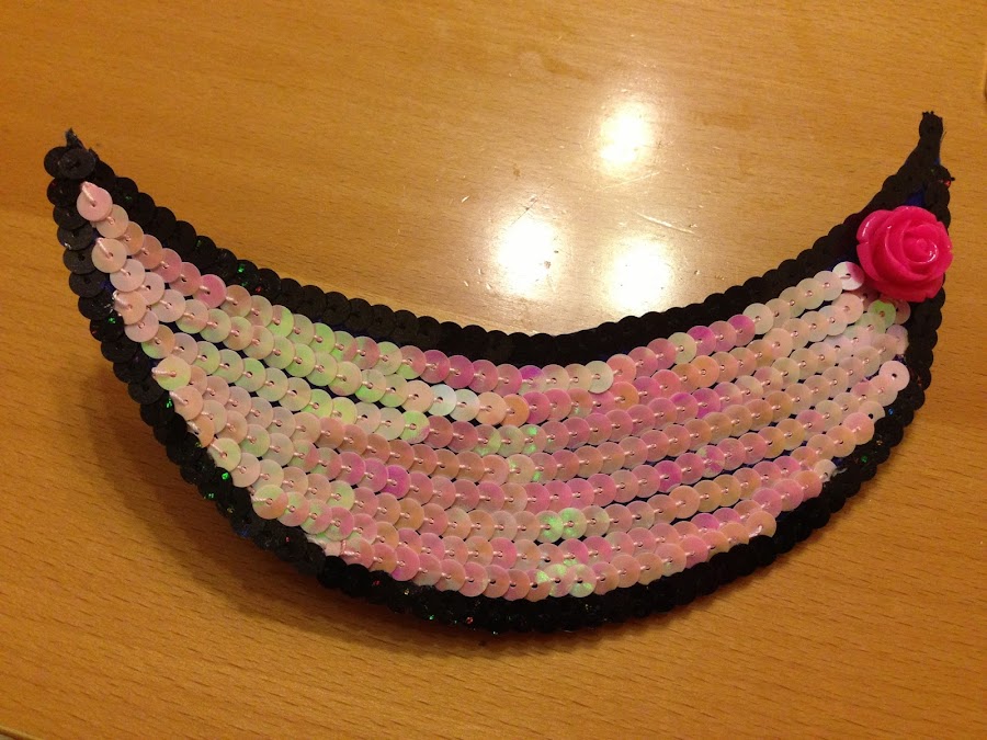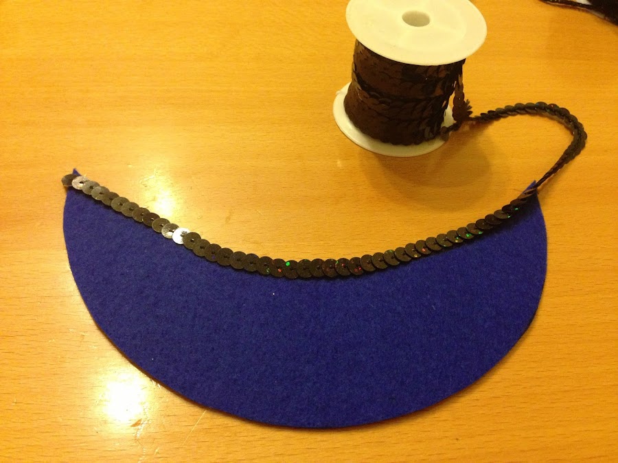 Una vez tengamos la plantilla sólo es cuestión de decorar nuestro collar con los complemetos y detalles que más nos gusten. En mi caso utilice unas lentejuelas que vienen ya unidad y se manejan muy bien y fijadas con pegamento, pero tiene que ser especial para bisutería, en caso contrario se puede ir despegando.