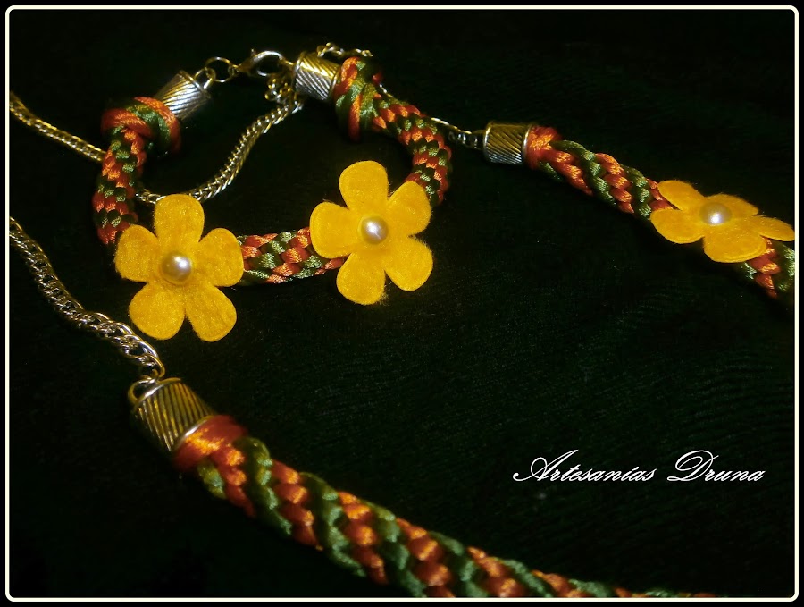 COLLAR Y PULSERA CON FLORES NARANJAS Y FORNITURAS
