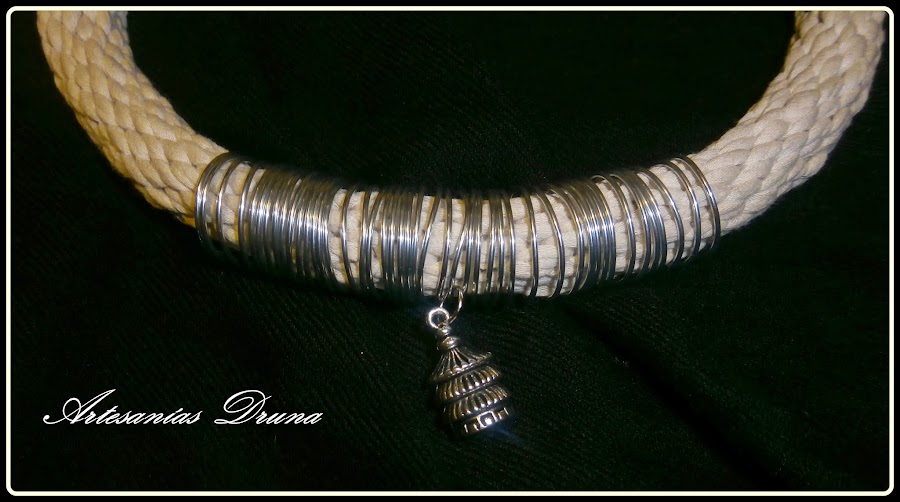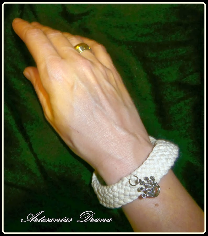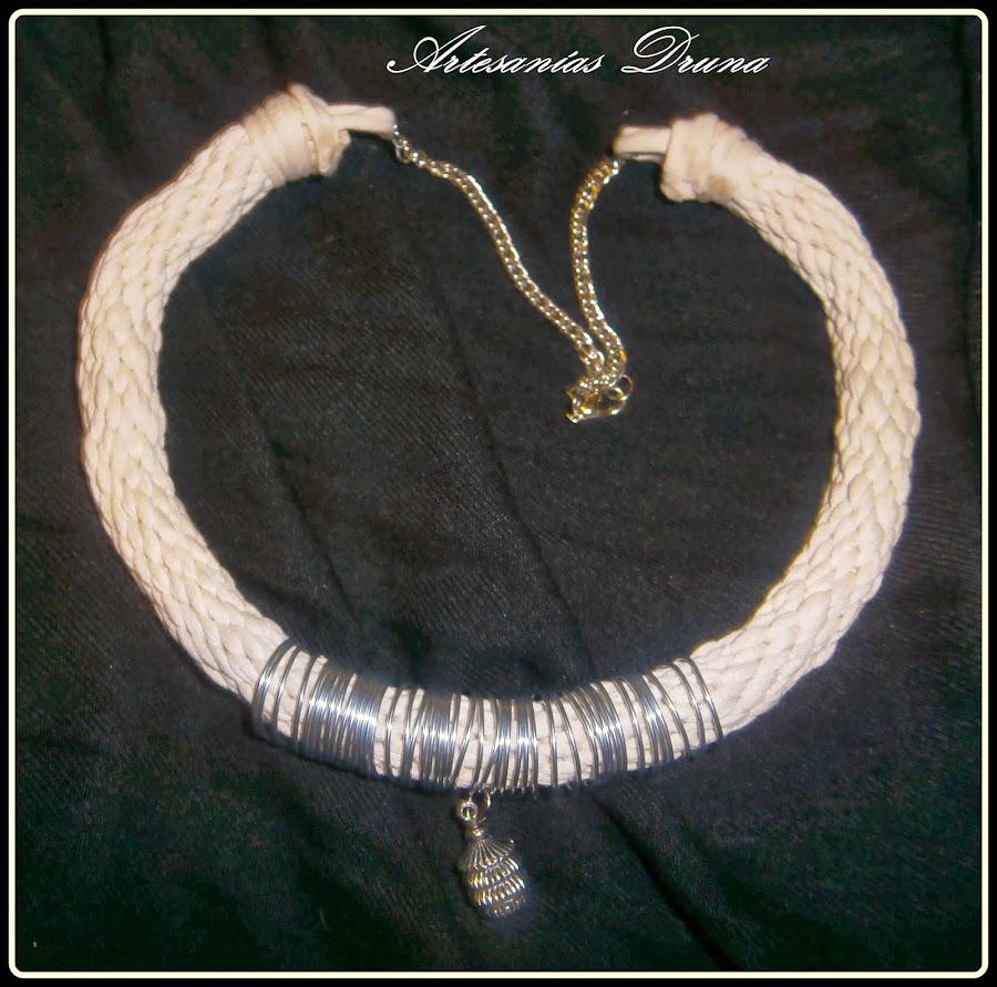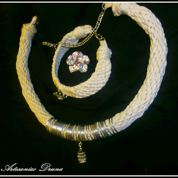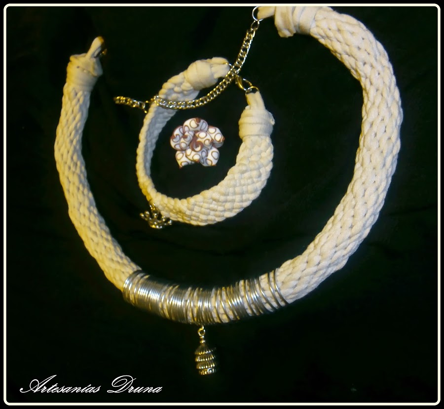 COLLAR Y PULSERA DE TRAPILLO CON ALAMBRE Y ANILLO ACRÍLICO