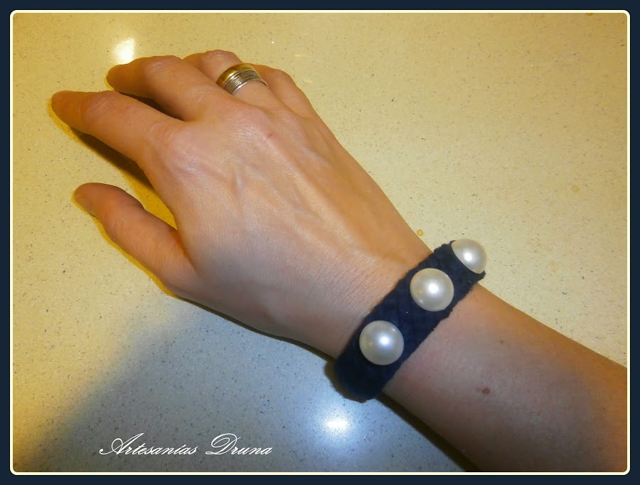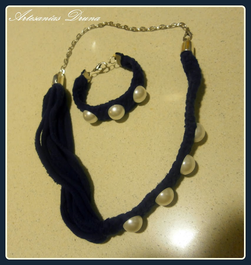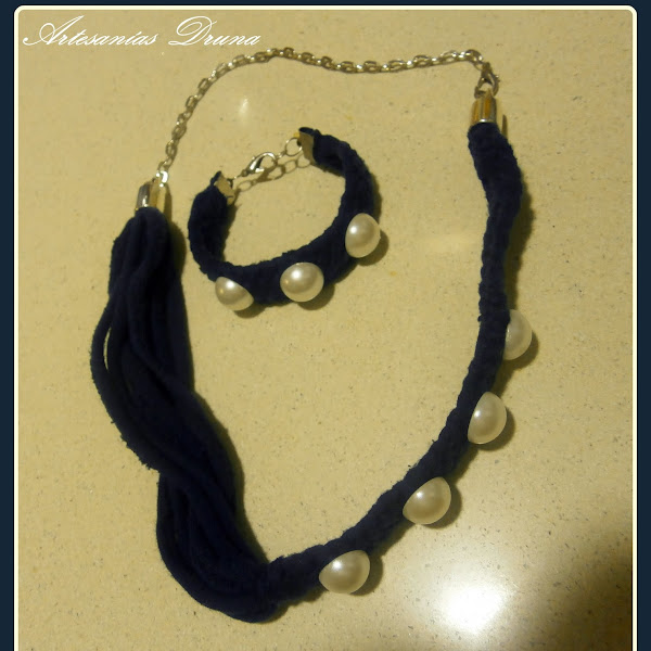 COLLAR Y PULSERA TRAPILLO AZUL CON PERLAS