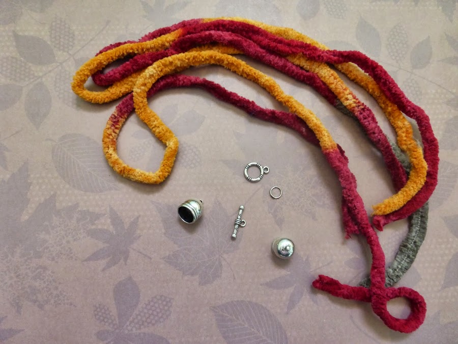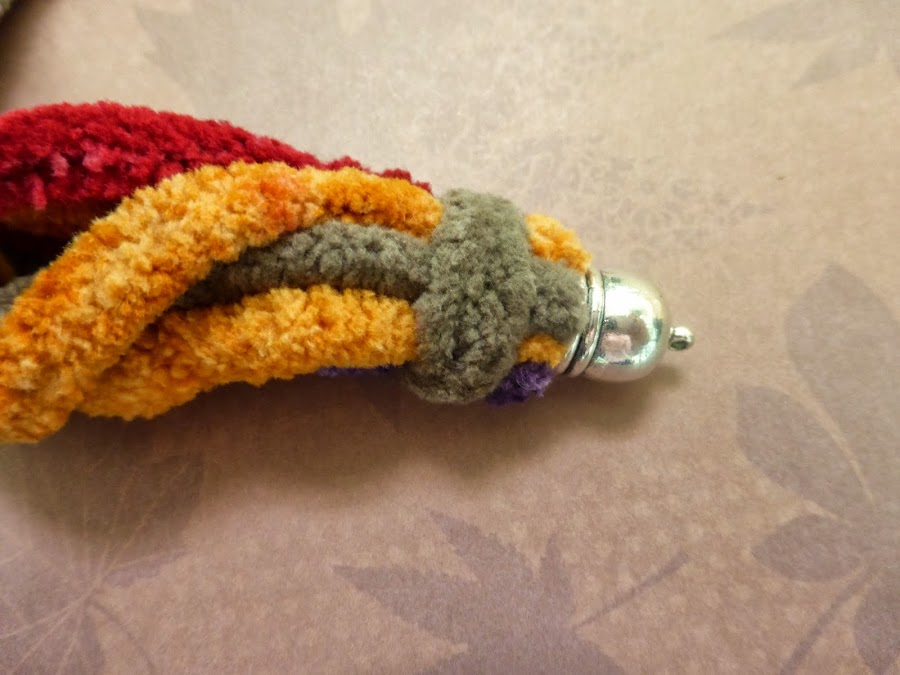 Juntaremos los extremos y los introduciremos dentro del capuchón, para que no se me escapara ninguna tira, las he atado con un trocito de lana.