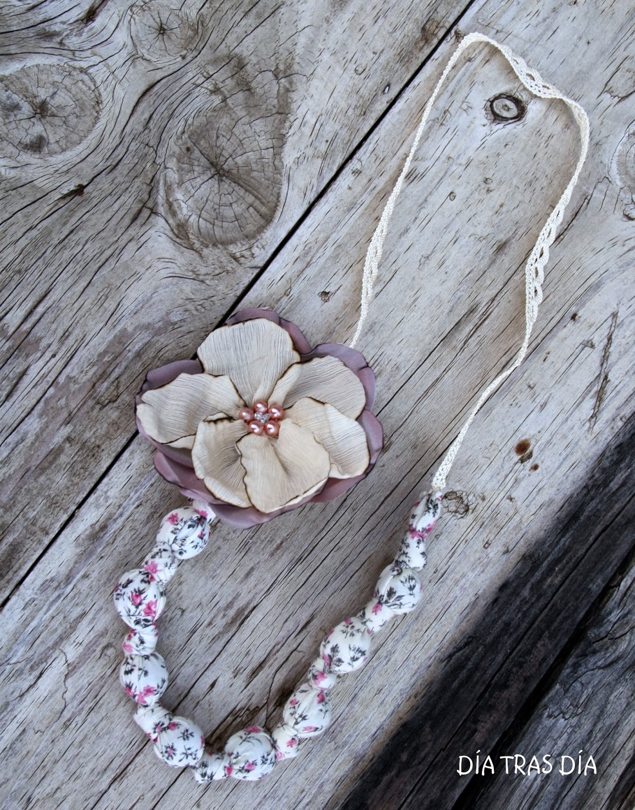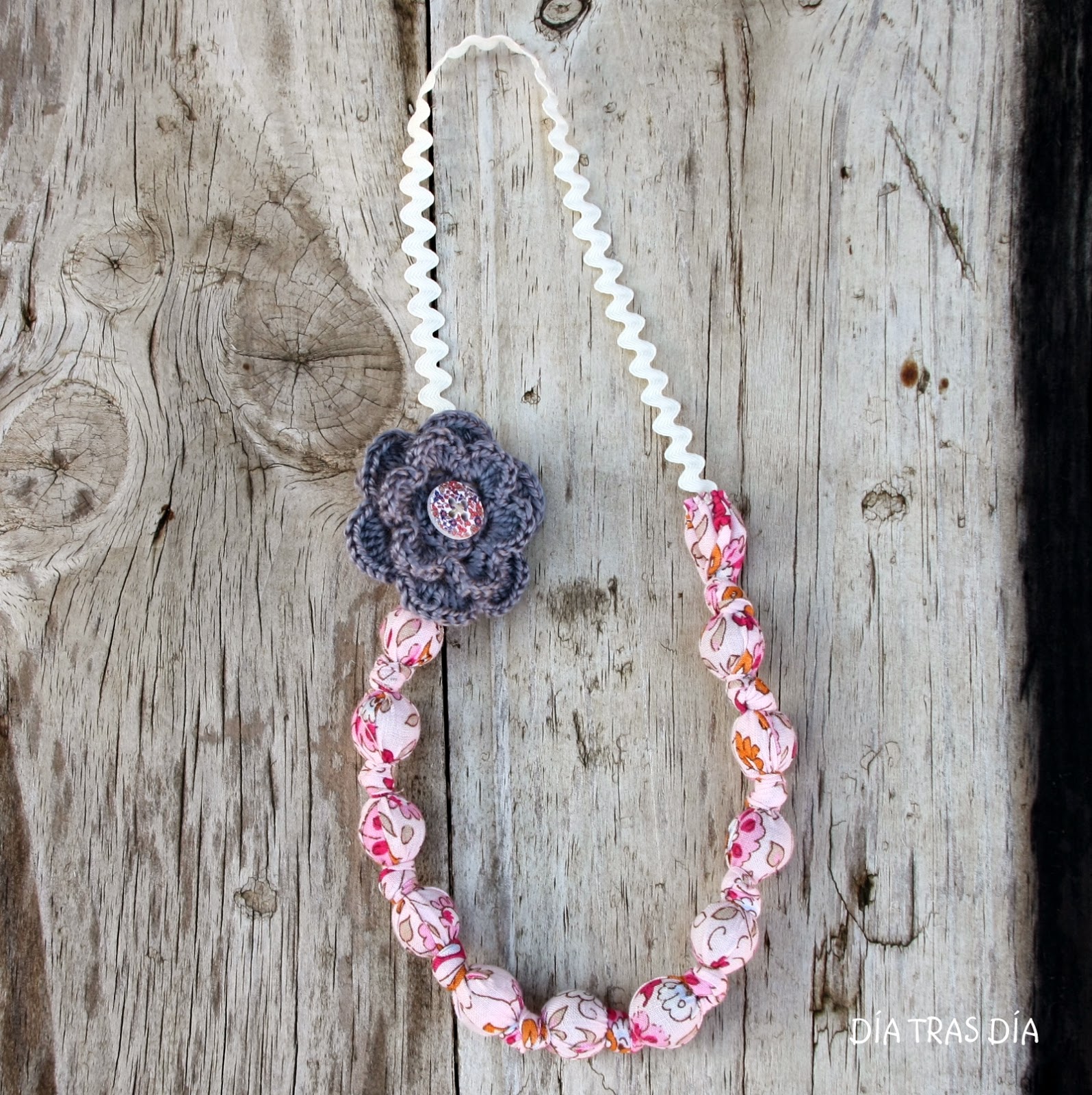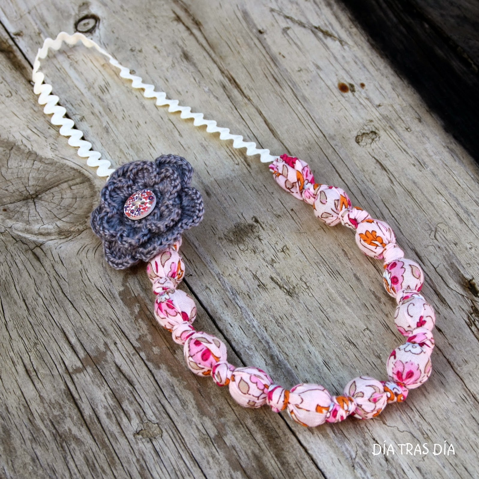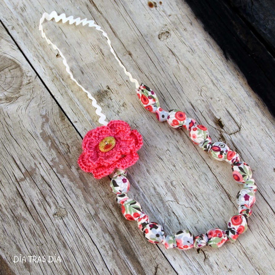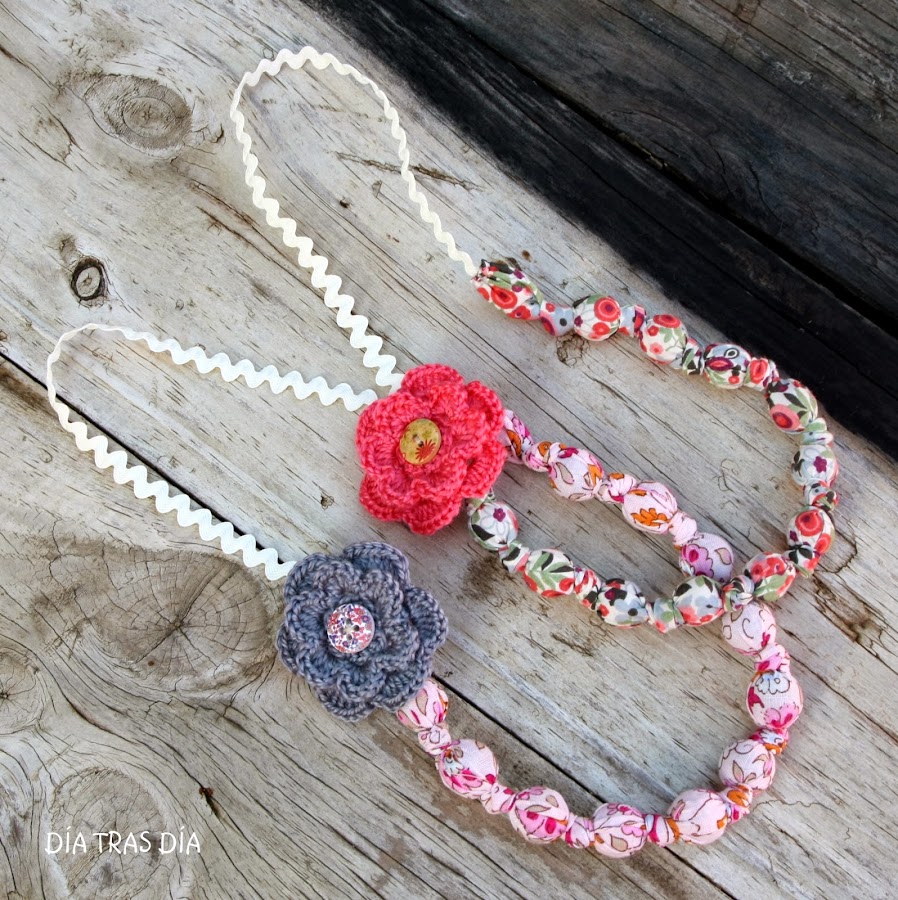 ¿Qué os han parecido? ¿Os gusta más cómo quedan con la flor de crochet o con la flor de tela? Tanto en un caso como en otro, las flores son broches que se pueden poner y quitar a gusto del consumidor, de forma que el collar puede ir con flor o sin flor y además el broche se puede usar no sólo con el collar, sino como complemento con cualquier otra prenda, luciéndolo en la solapa de cualquier chaleco, camisa o chaqueta.