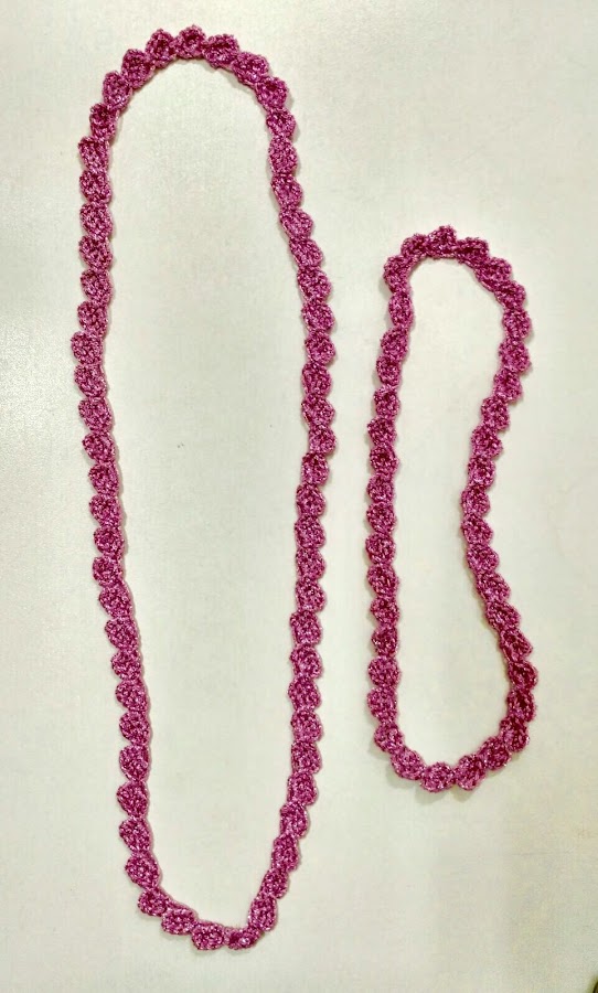 Nuevos collares de ganchillo. Realizados en un precioso hilo de perlé rosa. El encargo consistía en unos collares para la madre y su hija de 6 años. Espero que les haya gustado.
