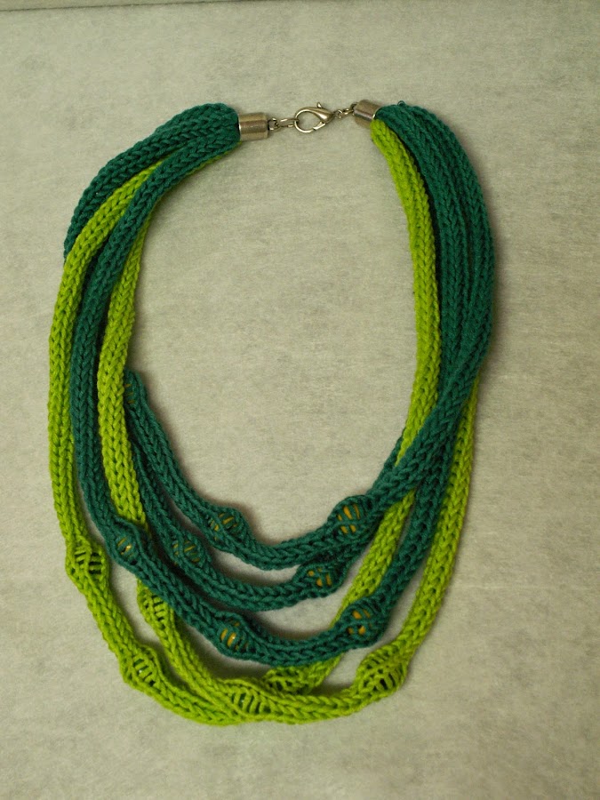 Hoy os quiero enseñar las opciones que nos da el cordón hecho con tricotín. Hace poco que empecé a hacer cosas con él, pero con un poco de imaginación y creatividad se puede hacer de todo... desde collares de muchos tipos y variedades hasta broches, diademas, pulseras...