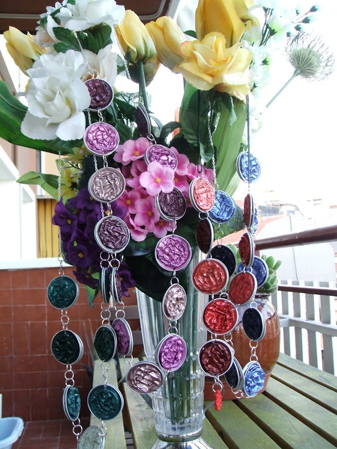 "Melenas al viento y vive el momento" Este año están de moda los collares joya y a mi me ha entrado el vicio de reciclar las cápsulas del café Nespresso ´ y hacer collares de todos los colores. En esta foto, que por cierto es muy mala, podéis ver lo bonitos que quedan puestos Besos