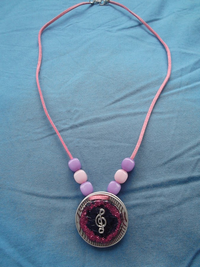 EN TONOS ROSAS Y LILAS CON ABALORIOS, PURPURINA Y NOTA MUSICAL METALICA