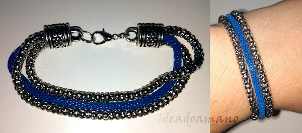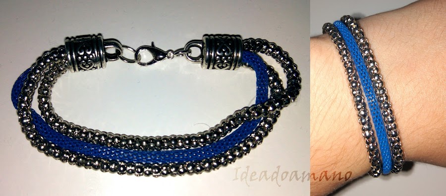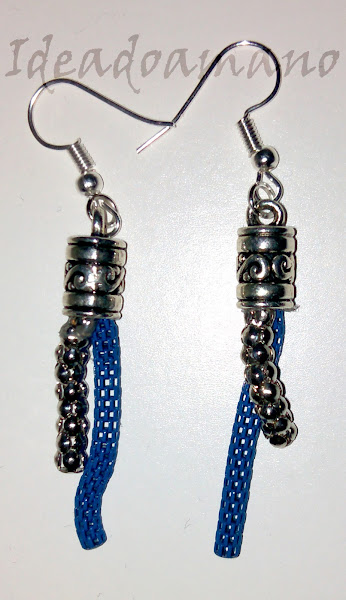 Pero claro, me sobraba un trocito de cadena azul y a esto había que hacerle algo de acompañamiento, así que le hice una pulsera y unos pendientes a juego: