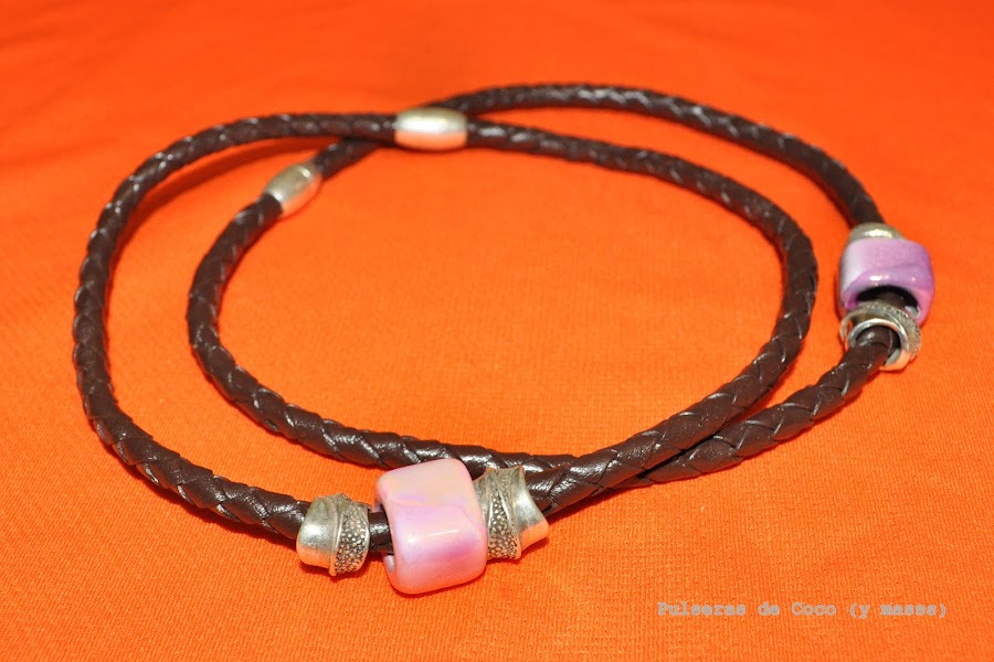 El primero es uno cortito, tipo cargantilla, que queda muy bonito y si tienes alguna cicatriz te la tapa perfectamente ( que todo hay que tenerlo en cuenta). Está hecho de cuero, zamak y cerámica.