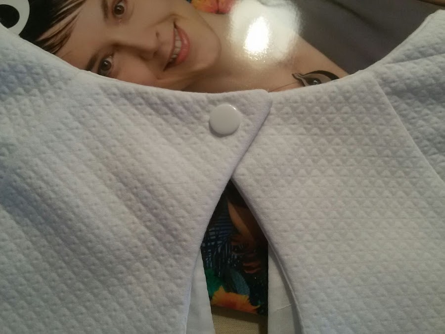 El cuello me pareció un poco cerrado para un vestido de verano, así que le dí mi toque personal con esta abertura en uve (no sé como se llama este escote, ¿alguna lo sabe?).