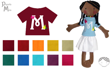 Mita is an completely handmade softie doll with embroidery eyes, clothes and plaited hair. It"s 40 cm long (16 inch), it has got a necklace with the Ethiopian flag and a white skirt. You can choose the T-shirt and butterfly colours. You can also choose the letter you want. Customize it!