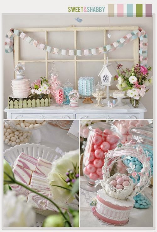 Esta paleta de aquí abajo se me antoja mucho para una Boda pero también un Baby Shower en la onda Shabby Chic o tal vez para una Tarde de Té entre amigas.