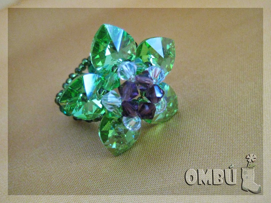 Y por último nuestro aporte, unas joyas muy primaverales.Incorporamos a nuestro catálogo dos piezas únicas: Un anillo, con forma de flor, hecho de pétalos de cristales de Swarovski Elements en tonos verdes, blanco y lila y una pulsera de tupis translúcidos y rocalla en tonos verdes. Bajo la luz del sol su brillo se magnifica!! Os gusta como quedan??