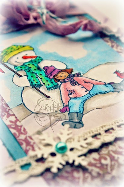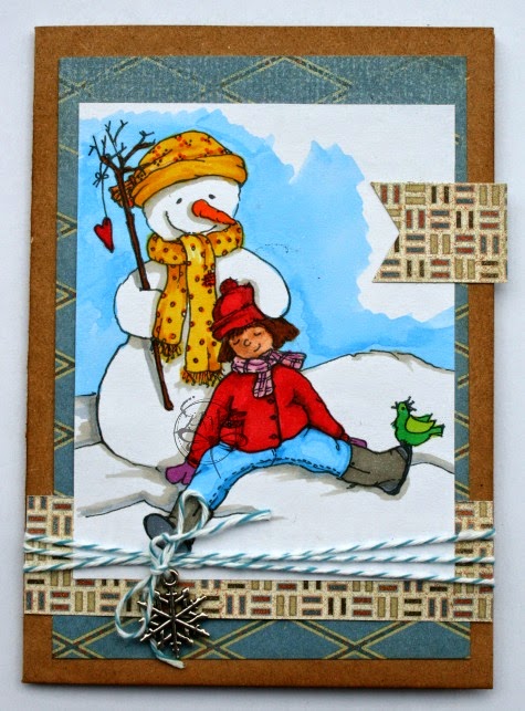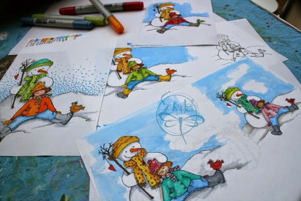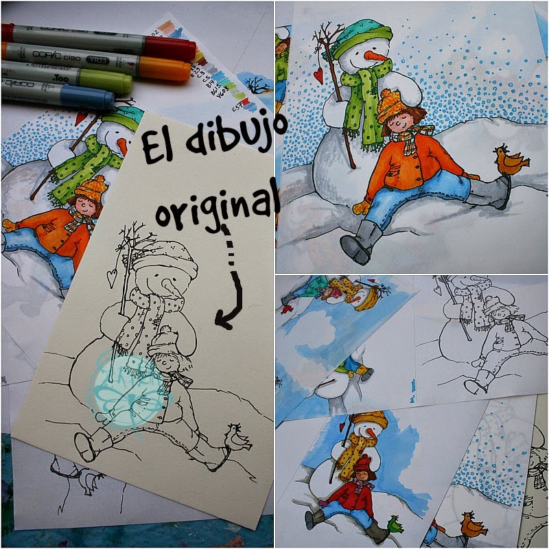 Afuera nevaba, y recordé que cuando mi hijo estaba pequeÑo, yo no tenia escapatoria, TENIA que salir con él! brrrrrr, tenia que ayudarle con su iglú, con el muÑeco de nieve, su trineo... en fin! yo rogaba porque se cansara... que va! que épocas! ahora, no sé, tal vez se me antoja hacer un muÑequito de nieve otra vez... aunque sea en papel! jajjaa y asi nació este diseÑito, muy mio!