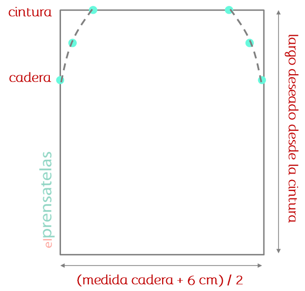 Os dejo un dibujo que como la corté, podría haberla hecho completemente recta, tomando la medida de la cadera, pero no quería que me quedara muy fruncido en la cintura así que desde la cadera a la cintura la fuí estrechando: