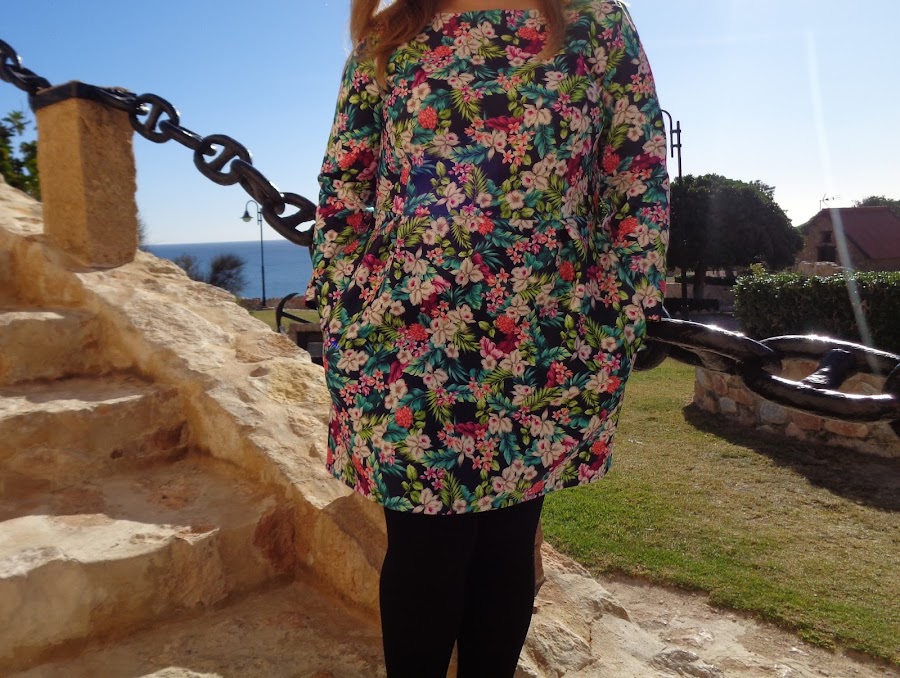 La tela es neopreno estampado de flores. Probé esta tela por primera vez en esta entrada, y me encantó trabajar con ella, se cose muy bien, se adapta perfectamente al cuerpo y es calentita.